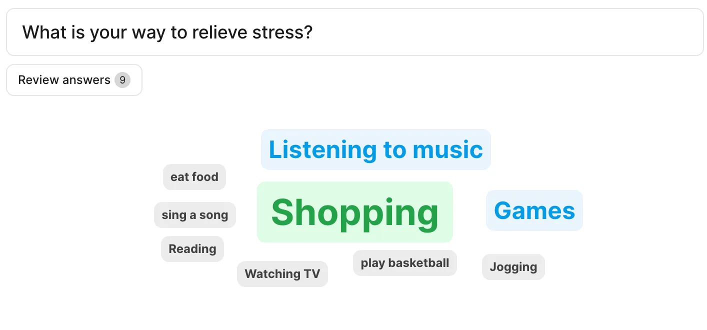 - The answers will be displayed in format as shown in the figure. If there are multiple identical answers, the word will be displayed larger. (On students’ screen)