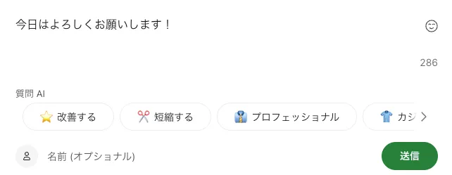 「質問AI」の欄の各項目を選択すると,入力した文章がAIによって以下のように書き換えられます.